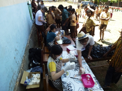 ⑤ 成果:以上のデータを現地保健衛生当局に提出し、全学童への駆虫を実施しました。これまでの本活動を通じて腸管寄生虫感染症の調査地域における高度まん延の実態が周知され、本調査地以外の複数の校区を含む学童健診の実施が保健当局において検討されています。