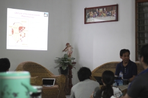 ブルクンバ助産婦アカデミーにおける報告会:アカデミーは、ブルクンバ地域の母子保健施設で働く助産婦を育成しています。このアカデミーの講師であるムディア・カマルディン氏は2015年に寄生虫研究により当教室で学位を取得しており、現在進行中の乳幼児における寄生虫調査の現地協力研究者です。今回の訪問では、この研究の背景にある母子保健における寄生虫病コントロールの重要性についてアカデミーの学生とともに地域保健担当者の参加を得てディスカッションすることができました。現地では母体の寄生虫感染の新生児および乳幼児への影響がほとんど考慮されておらず、報告で提示したインドネシアにおける寄生虫病の蔓延状態は、現地保健関係者に危機感をもって理解されました。質疑応答では、寄生虫の検出方法、コントロールのための基本的なアプローチなど、具体的な質問が寄せられ、今後、いかに介入策を構築していくべきかの話し合いがおこなわれました。