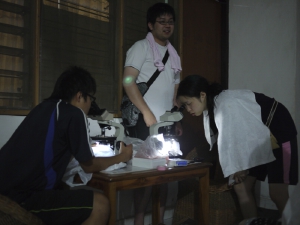 ③ フィールドワークの概要:学校健診で採取した学童便と感染経路推定のための家畜・家禽・野鼠などのヒト周辺の動物由来便を材料に、寄生虫の顕微鏡検査をおこないました。サンプル収集と顕微鏡検査には日本人学生と現地保健関係者が共同であたり、学生には寄生虫検出の実地トレーニングを、また現地関係者には感染症対策構築のためのエキスパート教育を提供しました。