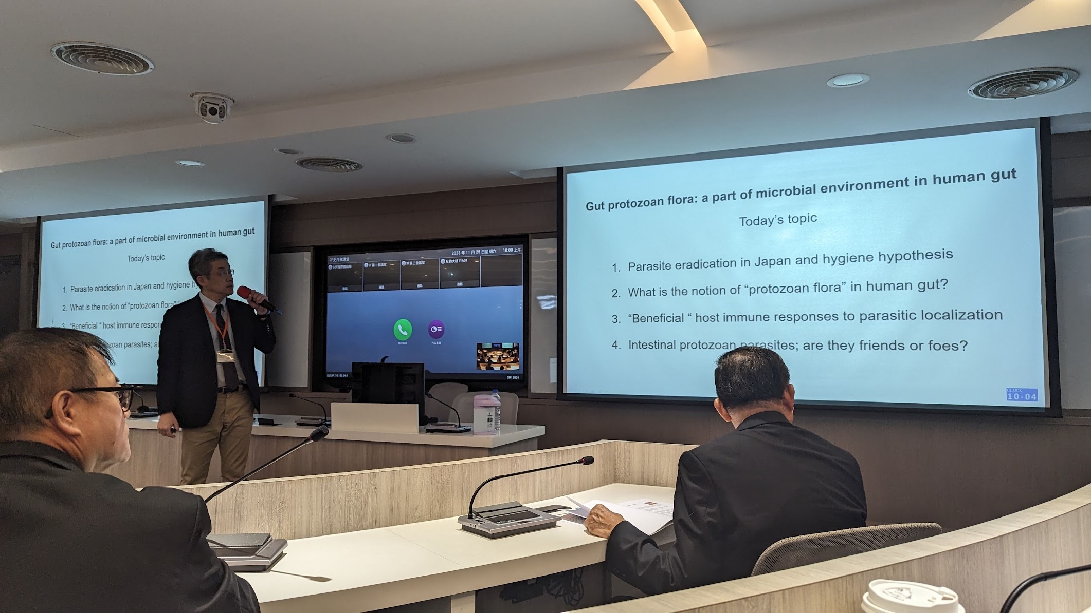 ハサヌディン大学を訪問し、医学部の博士課程学生を対象に Guest Lecture「Gut Protozoan Flora: A Notion of Factor X of Hygiene Hypothesis」をおこないました(2023年10月23日、ハサヌディン大学医学部、マカッサル)、また、ブルクンバ助産師学校を訪問し現在、同地で実施している出生コホート研究に関する採材の研修会を開催しました(2023年10月26日、ブルクンバ)。